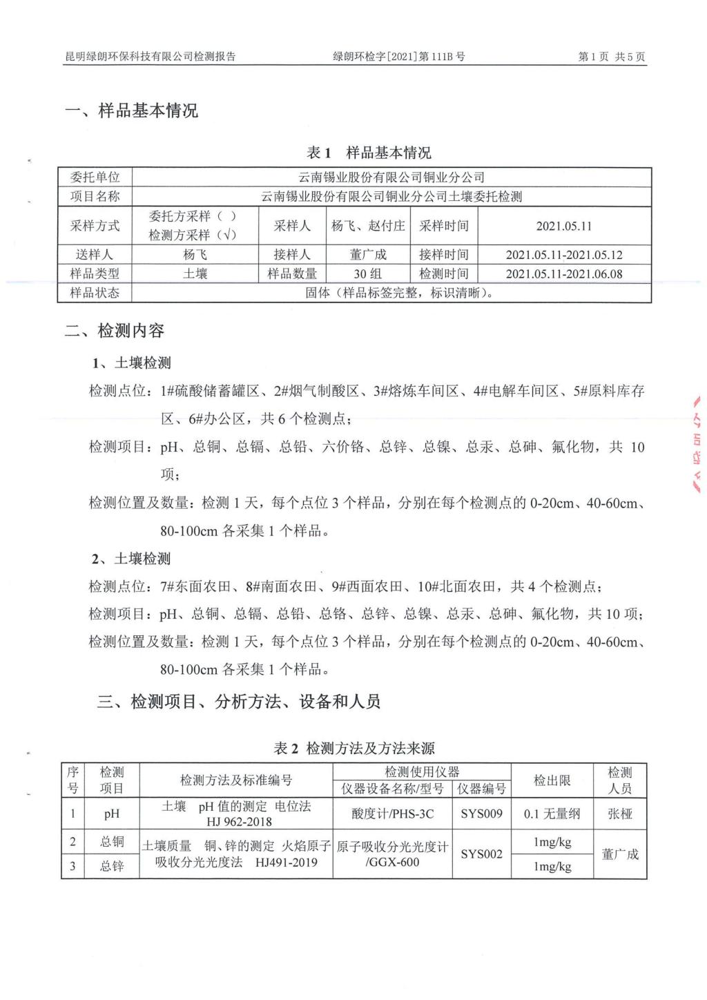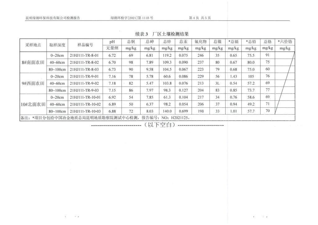 J9国际站登录股份有限公司铜业分公司土壤监测报告