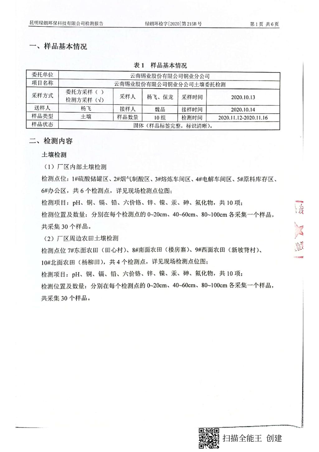 J9国际站登录股份有限公司铜业分公司土壤检测报告(2020年)公示
