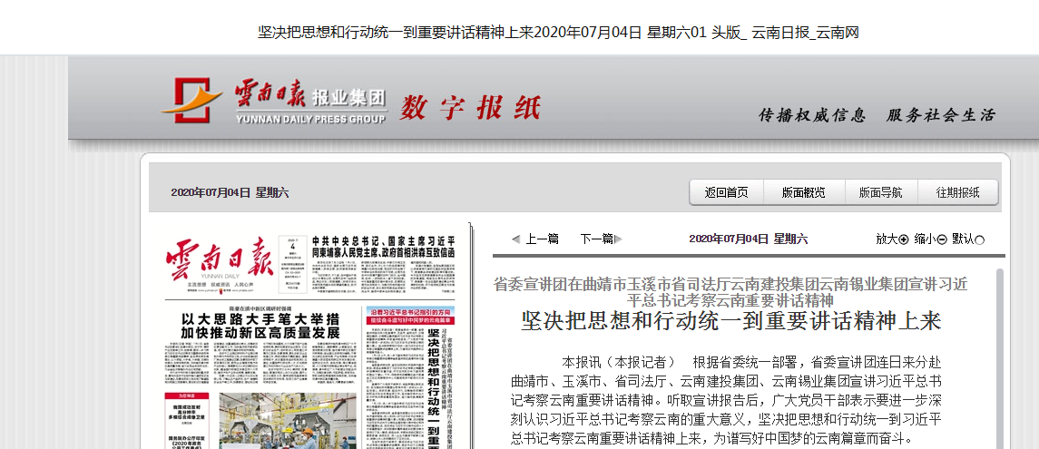 云南日报:坚决把思想和行动统一到重要讲话精神上来