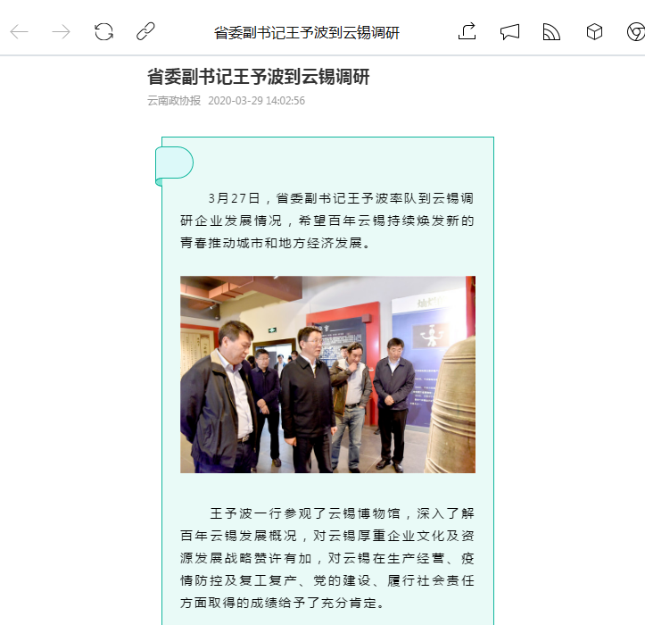 ​云南政协报:省委副书记王予波到J9国际站登录调研