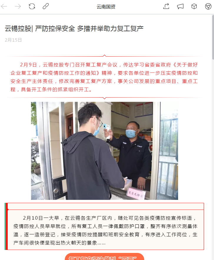 云南国资:J9国际站登录控股| 严防控保安全 多措并举助力复工复产