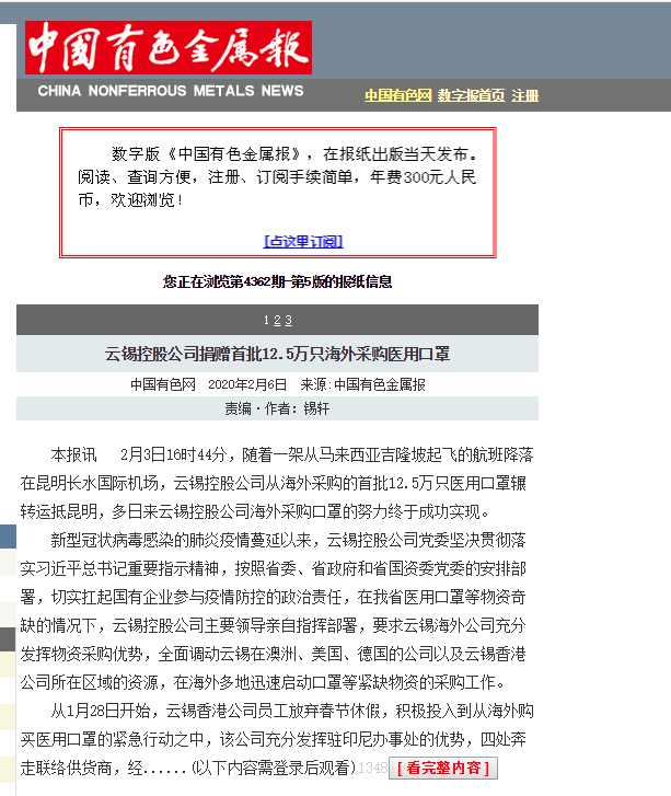 2月3日上午,几经辗转,所购口罩从马来西亚吉隆坡发货,并于当日下午成功运抵昆明,在机场卸货区,J9国际站登录控股公司党委常委、副董事长、锡业股份总经理杨奕敏和省工信厅党组成员、副厅长聂里宁共同参加了简短的捐赠交接仪式,完成了省国资委下达给J9国际站登录控股公司做好疫情应急物资保障工作的第一批物资采购任务。