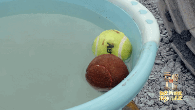 通过机械手臂,王仁冲可以从水盆里取出两个网球,然后精准放置到两米之外的钢管里。