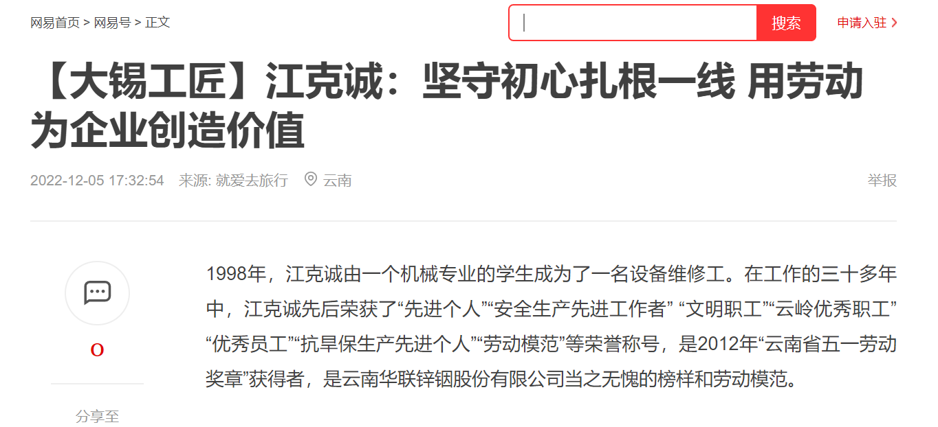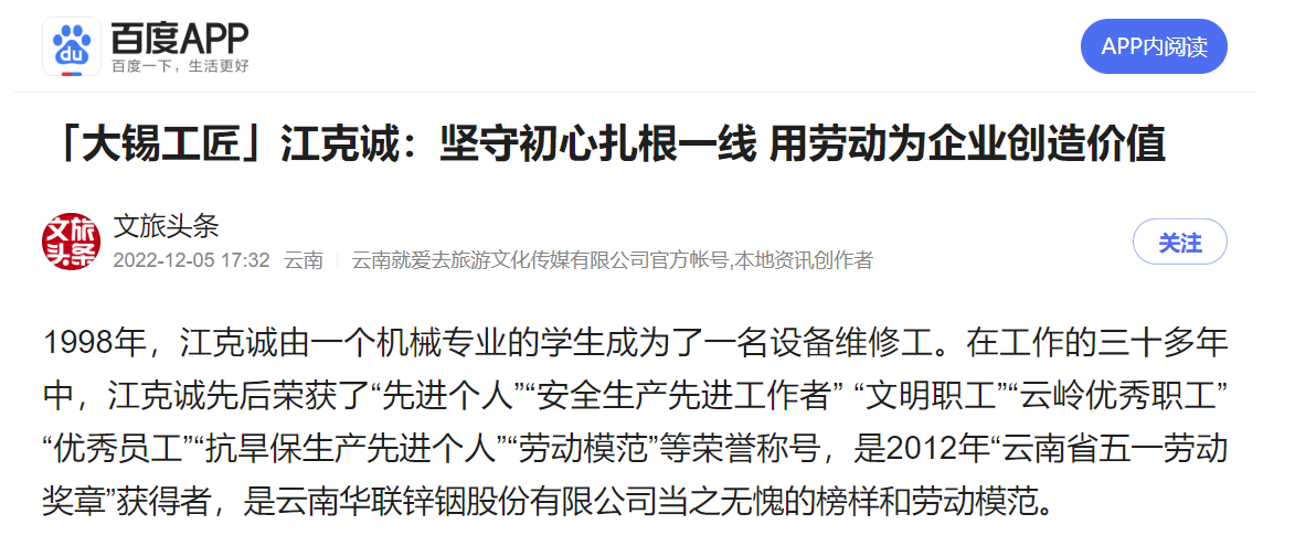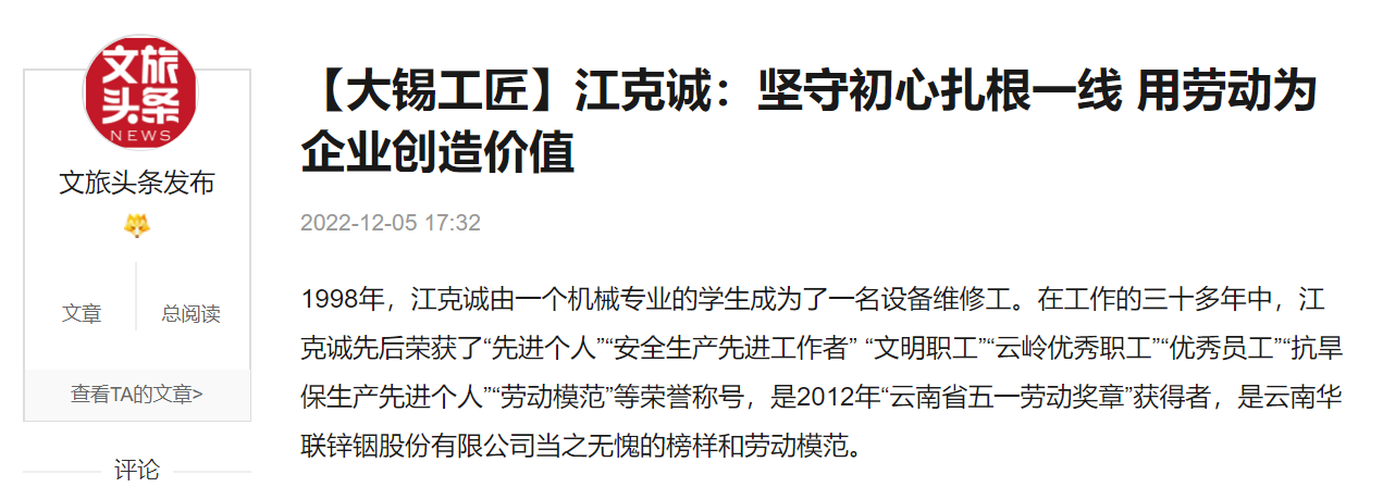 网易、一点资讯、百度、文旅头条:【大锡工匠】江克诚:坚守初心扎根一线 用劳动为企业创造价值
