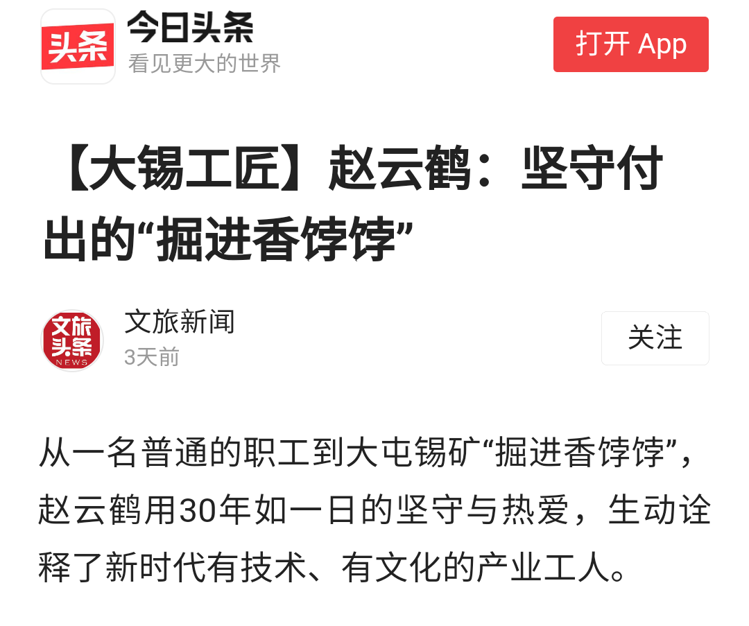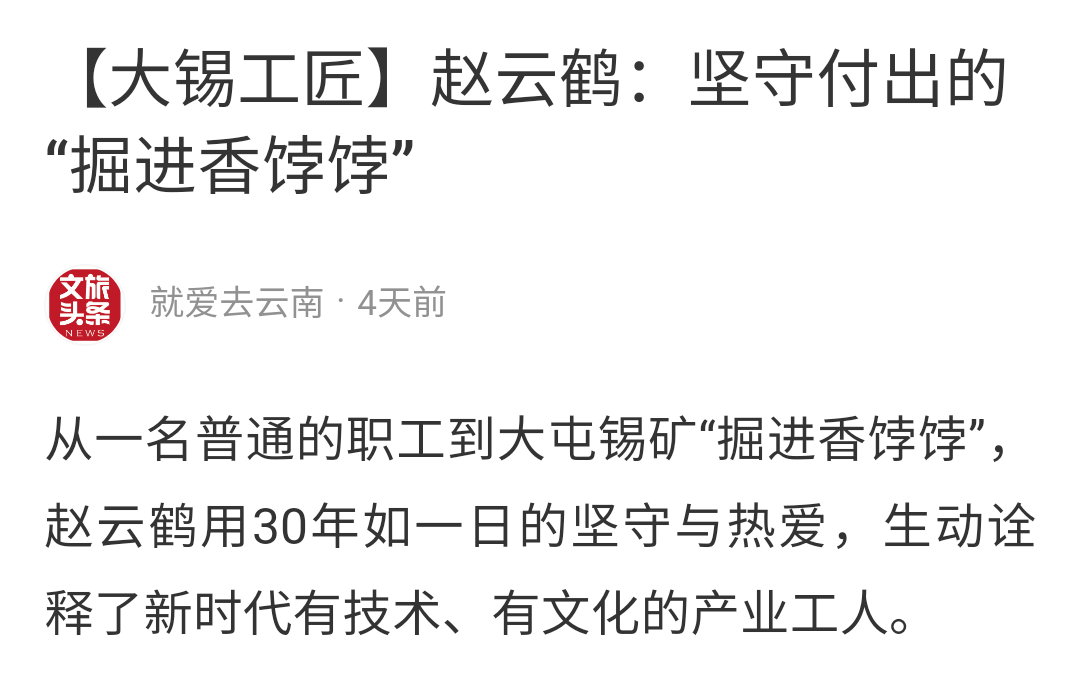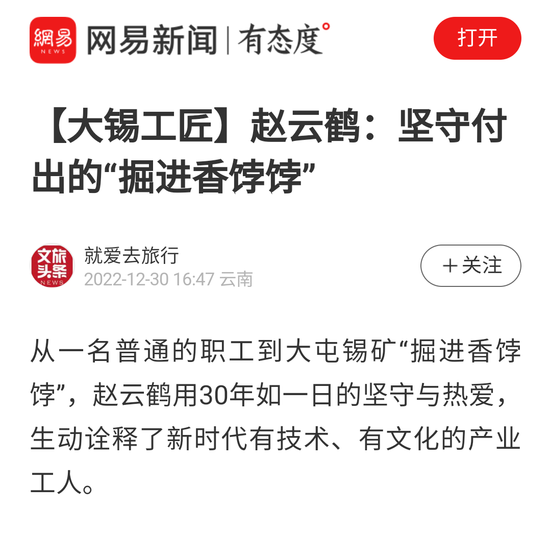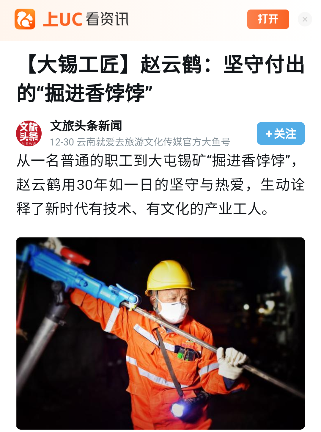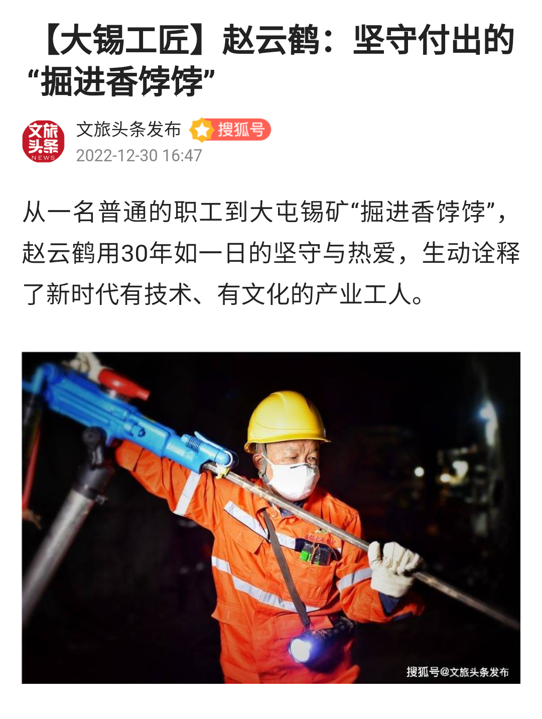 搜狐、一点资讯、网易、阿里文娱、今日头条、文旅头条:【大锡工匠】赵云鹤:坚守付出的“掘进香饽饽”