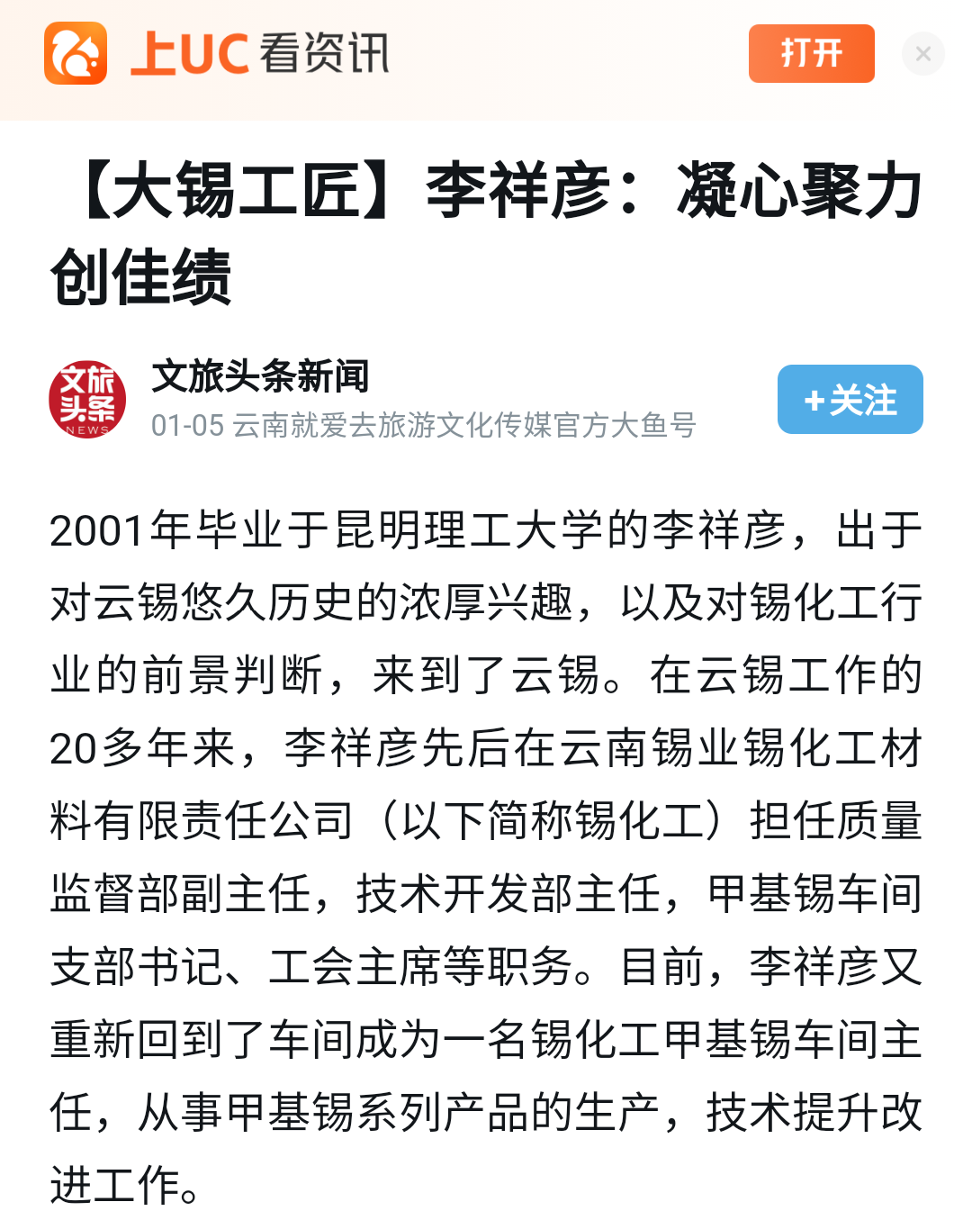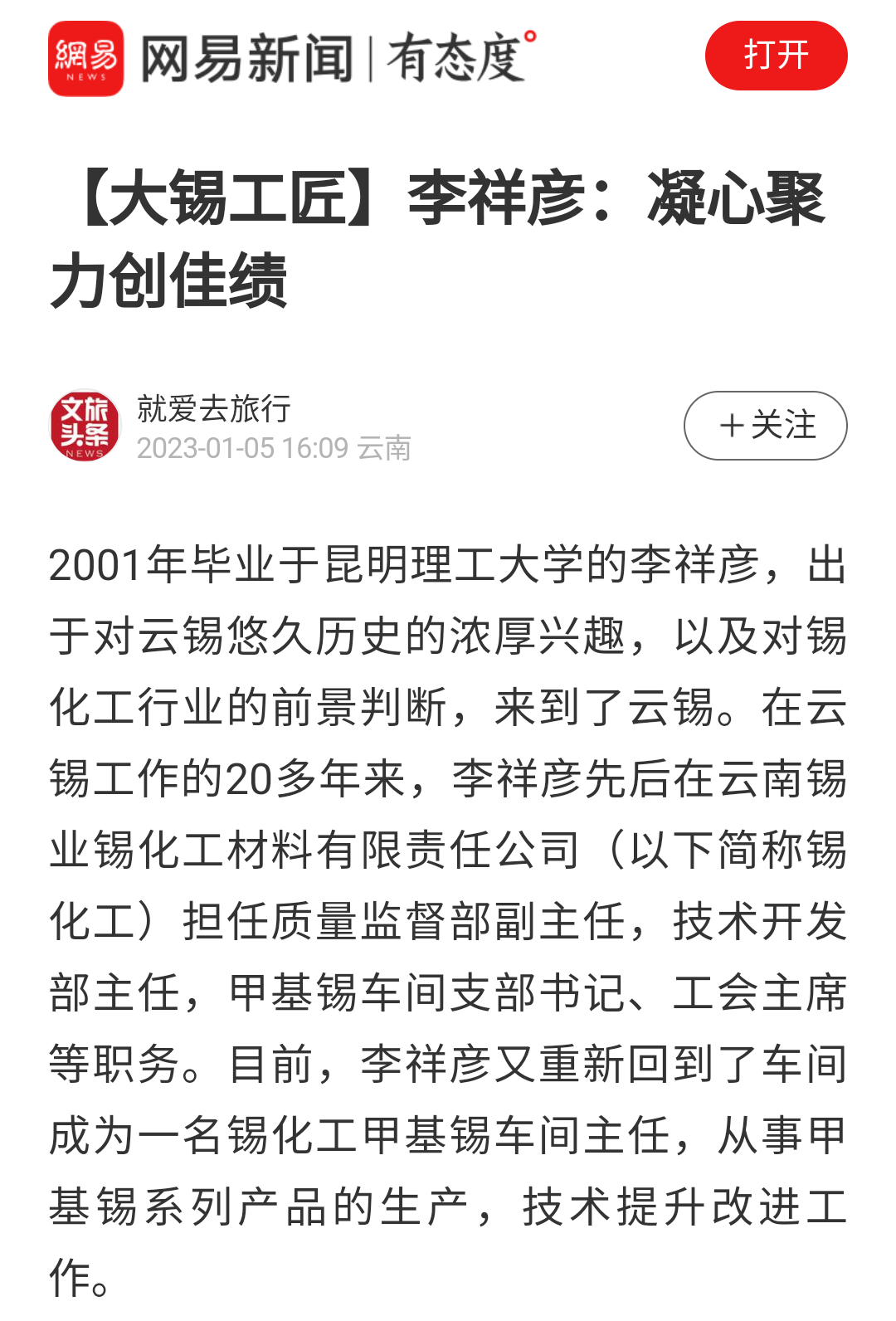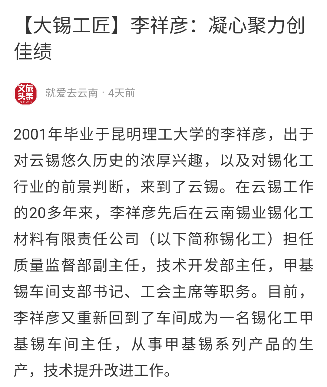 网易、大鱼、一点资讯、文旅头条:【大锡工匠】李祥彦:凝心聚力创佳绩