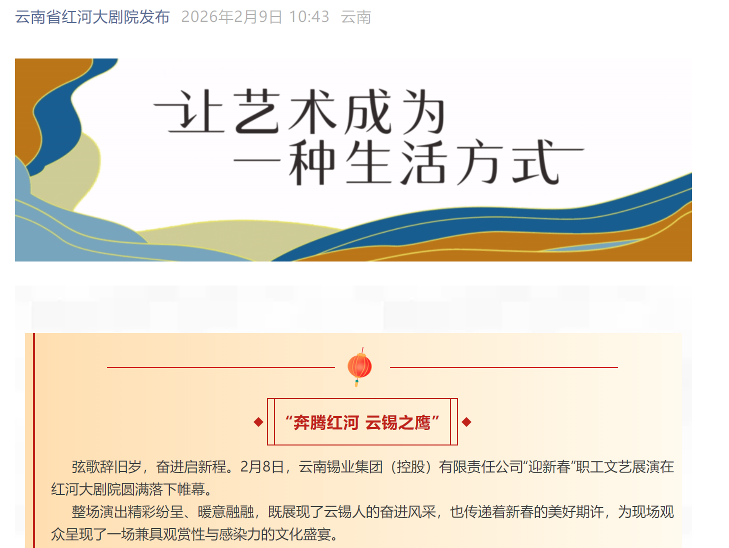 来源:红河日报、云岭职工、红河发布、红河州总工会、云南省红河大剧院发布、中国有色金属杂志