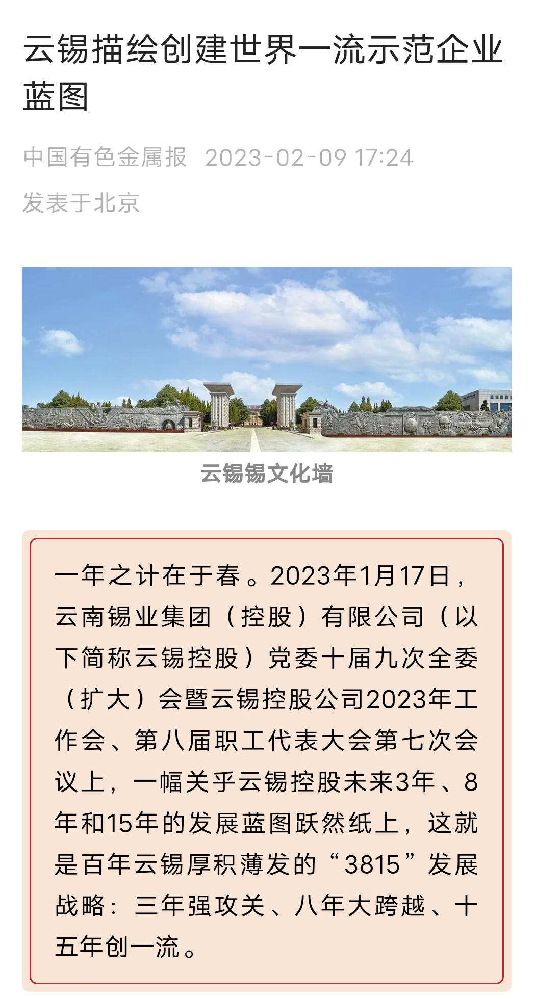 新华财经、云南国资、云南政协报、中国有色金属报、文旅头条:J9国际站登录描绘创建世界一流示范企业蓝图