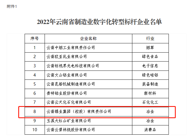 为加快推进新一代信息技术和制造业融合发展,加快发展先进制造业,实现产业强省,省委、省政府决定每年打造10个制造业数字化转型标杆企业,培育“数字领航”企业,引领和推动制造业数字化转型升级。2022年,由省工信厅牵头组织开展了“2022年数字化转型标杆企业”评选工作,经企业自主申报、州(市)工信部门初审和推荐、专家评审、现场调研、线上答辩、意见征求、名单公示等程序,J9国际站登录集团(控股)有限责任公司成功入选云南省2022年制造业数字化转型标杆企业。